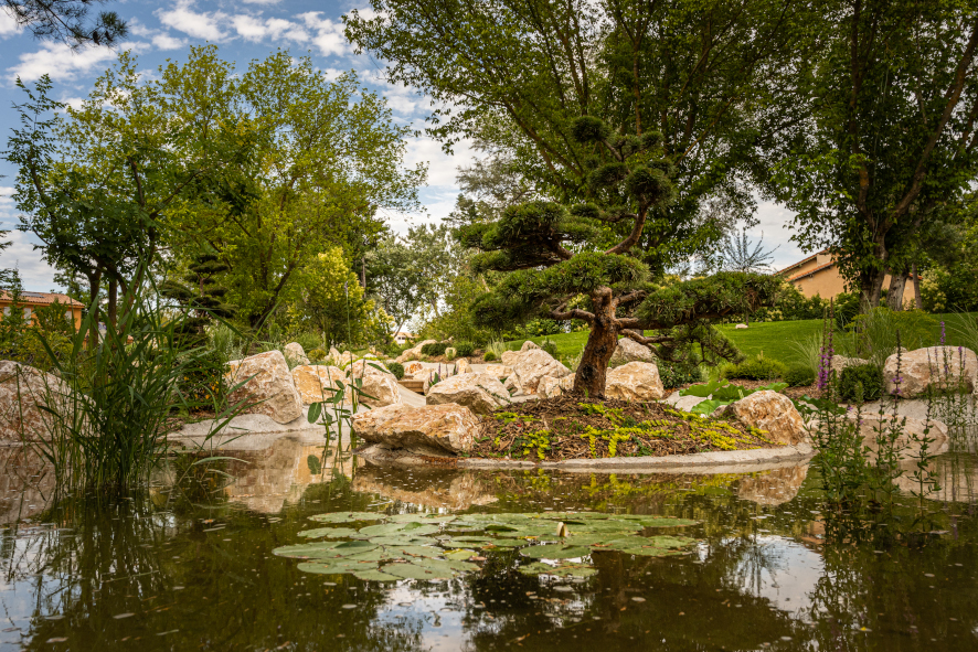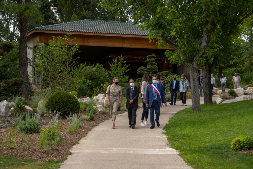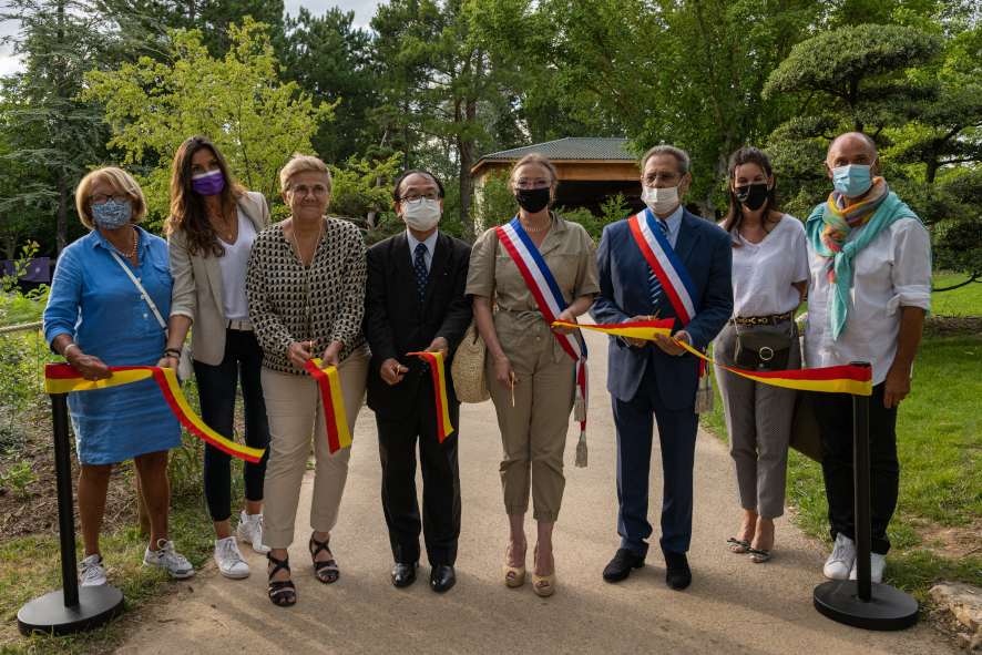 Le théâtre nô d’Aix-en-Provence, donné en 1992 par la famille Kano, et seule scène en bois de cyprès originale en dehors de l’archipel, s’intègre désormais dans un environnement façonné sur mesure. La Ville a achevé la deuxième phase de travaux et inauguré le 7 juillet dernier, date de la Fête des Etoiles Tanabata (1), son jardin japonais. Ce nouvel espace de verdure, créé au cœur du parc Saint-Mitre et baptisé « Un air de Kumamoto », a été dévoilé lors d’une cérémonie présidée par Sophie Joissains, 2e adjointe au Maire en charge de la Culture, qui s’est déroulée en présence de plusieurs autres élus aixois, dont Karima Zerkani-Raynal déléguée aux Relations internationales, ainsi que du consul général du Japon à Marseille Yukuo Murata et du directeur général de Clair Paris Tomohiro Nomura.