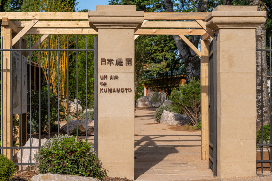 Ce jardin japonais de 6 500 m² a été conçu – en collaboration avec le Bureau des parcs et l’association des jardiniers paysagistes de la ville de Kumamoto – selon les codes nippons mais avec des essences méditerranéennes (lavande, romarin rampant, sauge…). Des pins taillés en nuage apportent une structure au jardin tandis que des feuillus se déclinent au fil des saisons. Ce nouvel espace de promenade, qui prête à la méditation et au voyage, comprend deux bassins avec des roches calcaires et des essences aquatiques, reliés par un petit ruisseau travaillé comme une rivière naturelle. A l’extrémité du jardin, une représentation du Mont Komezuka, apporte un élément paysager du département de Kumamoto, ville partenaire d’Aix-en-Provence depuis 2013.