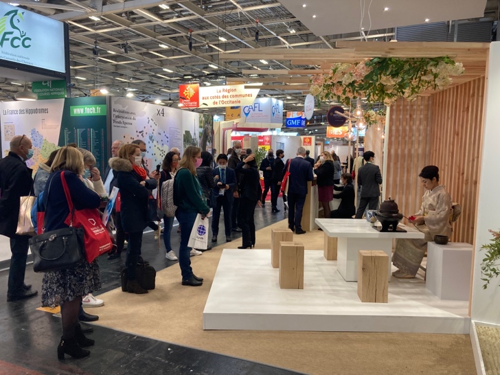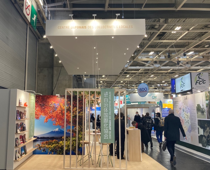 CLAIR Paris participe fidèlement au Salons des Maires depuis 2002 en qualité d’exposant. C’est pour nous une occasion privilégiée de promouvoir les collectivités territoriales japonaises et d’entretenir les liens existants avec les acteurs locaux français. Sur son stand aux lignes épurées, CLAIR Paris s’efforce d’offrir aux visiteurs, un espace de détente et d’immersion dans la culture japonaise. Dans l’esprit omotenashi (art de l’hospitalité à la japonaise), nous organisons la cérémonie du thé et les visiteurs peuvent déguster du thé et des gâteaux traditionnels, ce qui agrémente nos conversations. Cela change du vin et du fromage proposés sur les autres stands et attire le regard des visiteurs ! Cette année encore, de nombreux visiteurs sont venus à notre rencontre et ont pris de belles photos souvenir. Nous avons reçu plusieurs demandes de collectivités territoriales françaises souhaitant nouer des jumelages avec le Japon. Il est certain que les échanges ne sont pas aisés dans le contexte de la pandémie de Covid-19, mais une utilisation habile des ressources offertes par les technologies de l’information permet dans une certaine mesure de pallier cette adversité. CLAIR Paris continue à favoriser le tissage de liens et les échanges d’informations par tous les moyens possibles.