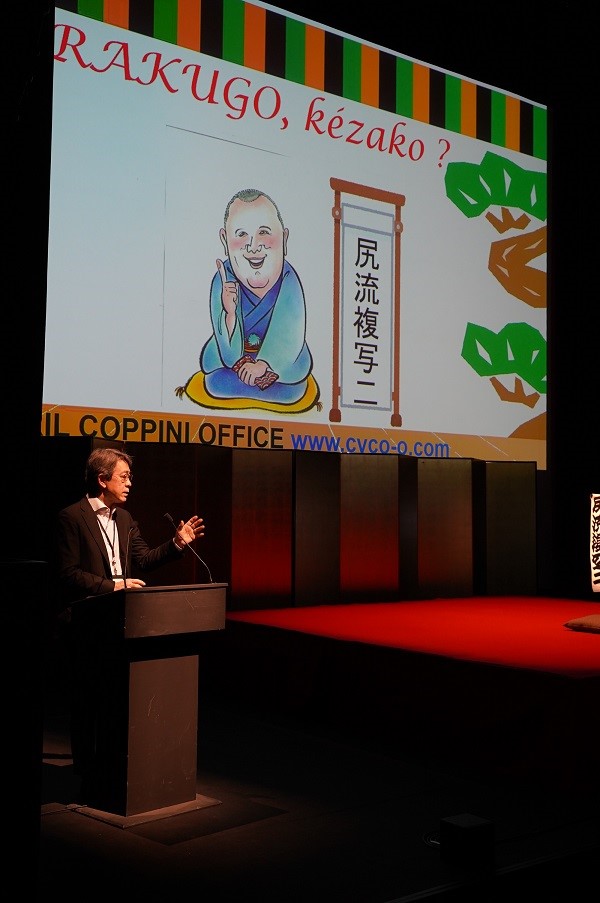 Cyril Coppini, originaire de Nice et résident au Japon depuis de nombreuses années, est un « performeur de Rakugo » célèbre dans la sphère franco-japonaise. En effet, il est le seul à pouvoir jongler de français en japonais en mêlant facéties, dialectes régionaux, intonations vocales, mimiques et effets scéniques. Les vrais amateurs de Rakugo sont conquis, les novices découvrent avec surprise qu’un art oratoire du 16e siècle reste un spectacle « vivant » et les apprenants en japonais s’émerveillent de comprendre sans sous-titres. Les sourires s’illuminent, les rires s’unissent, l’humour est un langage universel.