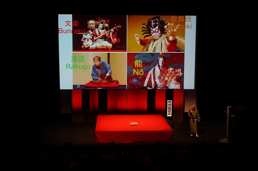 Après les allocutions de Hitoshi Suzuki, président de la MCJP, et Tomohiro Nomura, directeur général de CLAIR Paris, qui ont rappelé le rôle des participants du Programme JET, passerelle entre les deux pays, ainsi que les actions de l’association JETAA France pour faire connaître davantage la culture japonaise en France, les spectateurs ont embarqué pour un voyage culturel au cœur de l’humour japonais. Mais, fidèle à la vocation pédagogique du JETAA France, tout spectacle se méritant, une conférence ludique et dynamique a permis de comprendre les origines historiques du Rakugo, les différents styles régionaux de cet art oratoire, les accessoires et leurs utilisations ainsi que les fondamentaux de la gestuelle scénique.