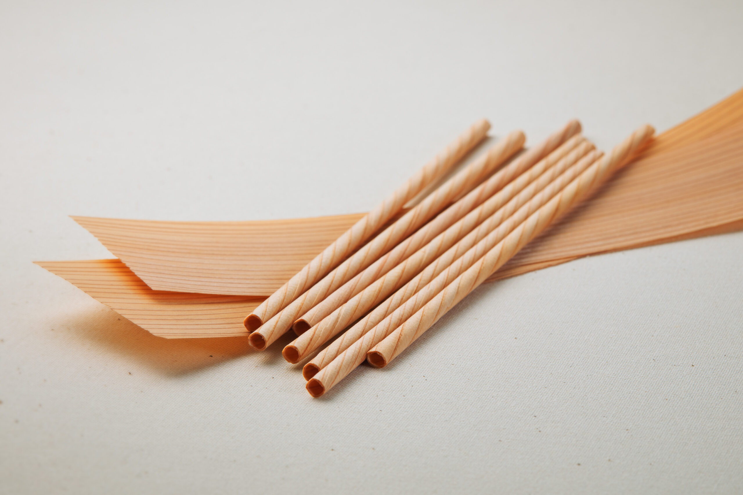 Les pailles en bois sont des pailles écologiques fabriquées à partir de bois coupé et enroulé en fines feuilles de 0,15 mm d’épaisseur. Ce procédé de découpe utilisé pour aplanir et lisser la surface du bois s’inspire de la technique traditionnelle japonaise kanna kezuri , utilisée dans le monde de la construction depuis l’an 574.