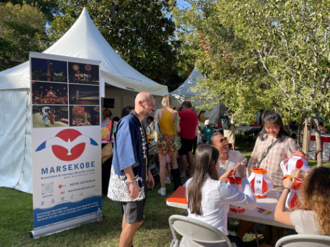 Les visiteurs découvrent la culture japonaise traditionnelle sur le stand de l'Association de jumelage « MarseKobe »