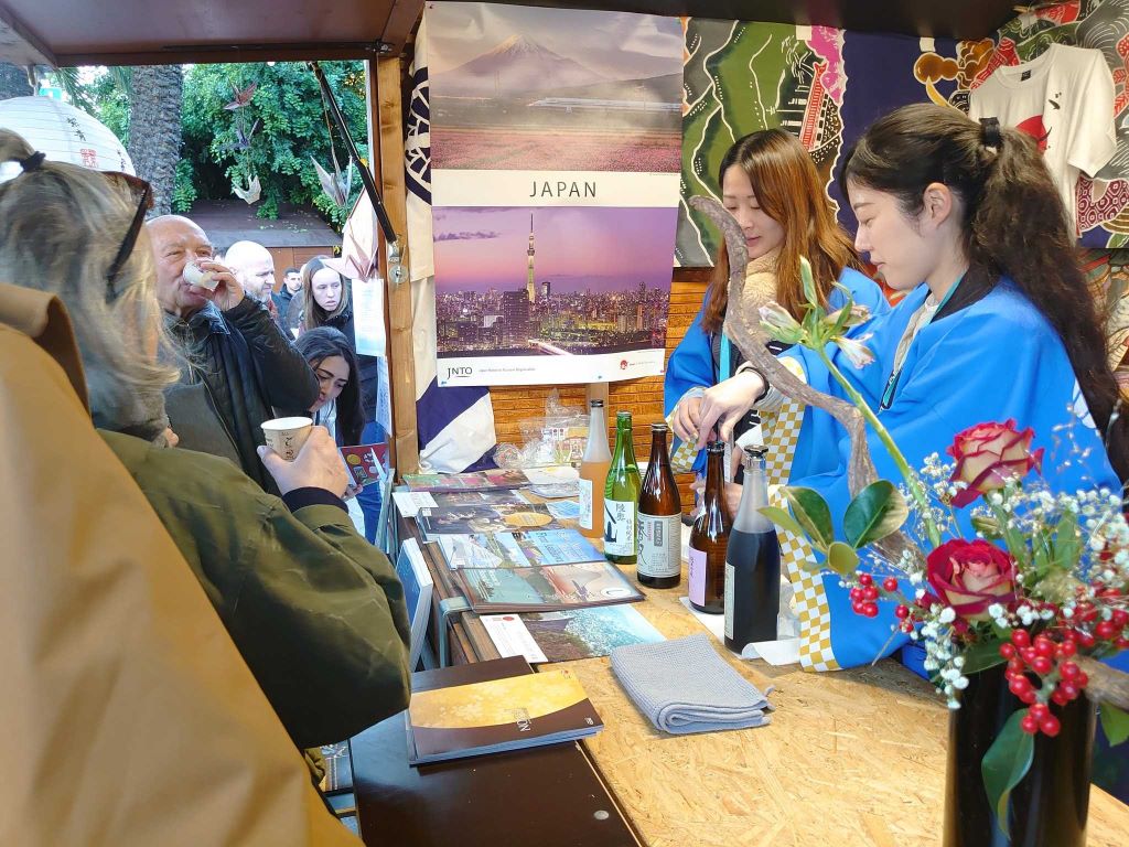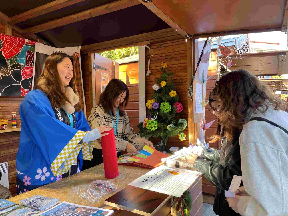 Le dimanche 17 décembre, le Consulat général du Japon à Marseille et le bureau de CLAIR Paris ont coopéré avec l’ARJNCA (l’Association des ressortissants japonais de Nice Côte d’Azur) pour tenir un stand. L’ARJNCA faisait des démonstrations de calligraphie et d’ikebana, le Consulat général du Japon à Marseille proposait de tirer au sort des omikuji (messages de bonne fortune), et CLAIR Paris a distribué des brochures sur les collectivités locales japonaises en offrant des dégustations de saké, communiquant ainsi sur les différents attraits du Japon.