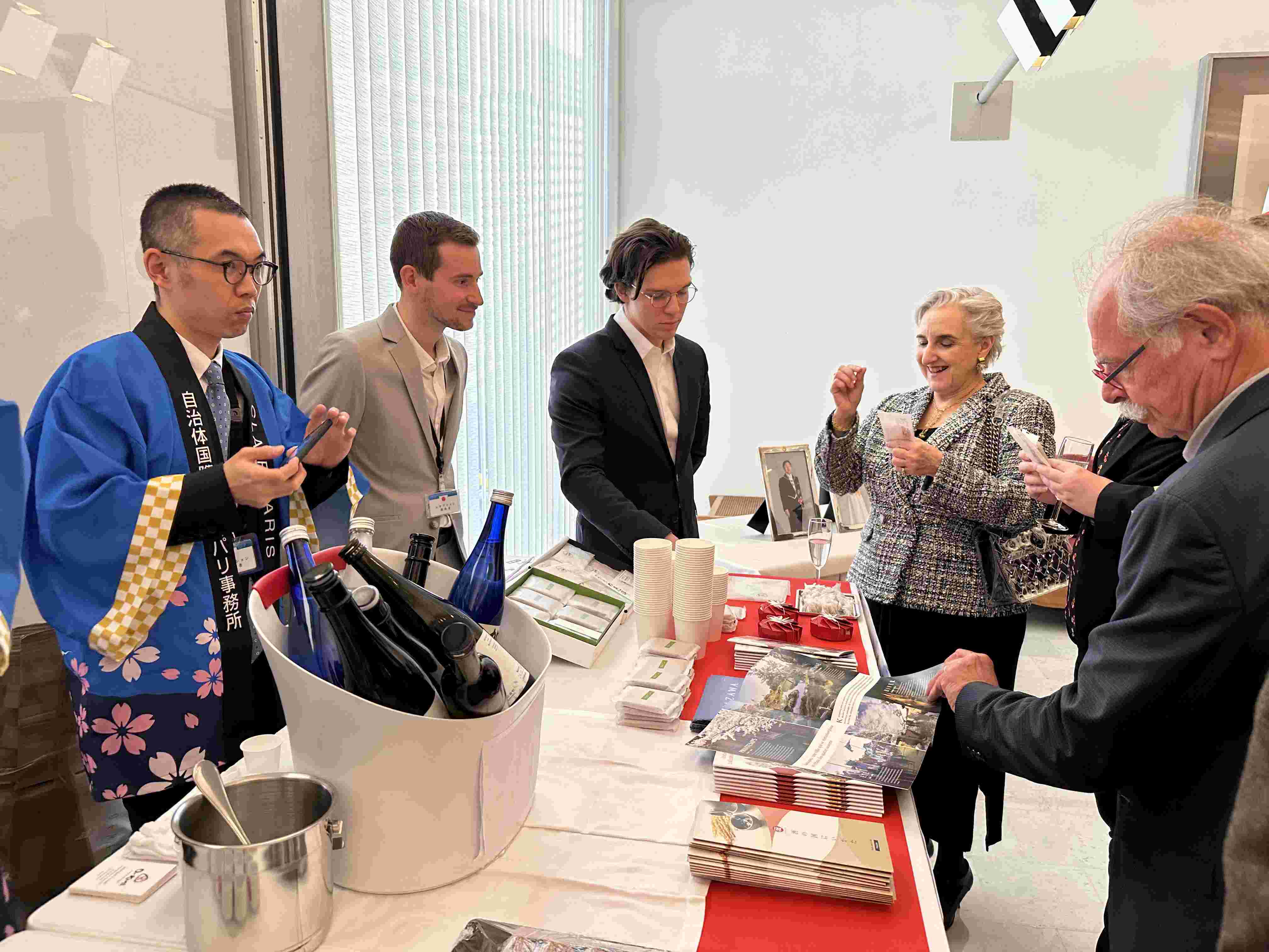 Le bureau de CLAIR Paris tient chaque année un stand lors de cette célébration afin de présenter aux invités la culture et l’histoire de plusieurs régions, promouvoir activement leurs charmes pittoresques illustrés dans des brochures ainsi que les nouvelles destinations touristiques. Parallèlement, des dégustations de saké sont organisées afin de susciter l’intérêt pour le Japon. Cette fois-ci, les sakés des villes de Niigata et de Kanazawa ont été servis dans des coupelles à saké spéciales, appelées o-choko, afin de promouvoir les différents goûts du saké en fonction de la région où il est produit. Les visiteurs ont été surpris d’apprendre que les saveurs et les arômes diffèrent selon les brasseries, et certains ont même pris des brochures pour se renseigner davantage sur les terroirs et lieux de production du saké.