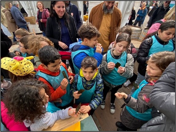 Afin de présenter les charmes marins de notre région et la culture que nous avons développée autour des ressources marines, nous avons eu recours à des carnets de croquis didactiques et pédagogiques sur lesquels étaient collées de nombreuses illustrations et photographies qui répondaient aux thématiques « Découvrir la jungle marine » et « Des algues à la table ». Nous avons également organisé une dégustation d’algues grillées. Alors qu’ils décrivaient avec une remarquable précision les saveurs et les arômes de ce qu’ils mangeaient, les écoliers français nous sont apparus comme des vrais petits ambassadeurs de ce pays dans lequel la gastronomie occupe une place prépondérante. Les portes du festival étant ouvertes au grand public, des étudiants, des océanographes ainsi que des spécialistes de la cuisine aux algues ont également manifesté un vif intérêt pour les exposants et nous ont régulièrement posé de nombreuses questions démontrant une véritable envie d’en connaître davantage sur le sujet.