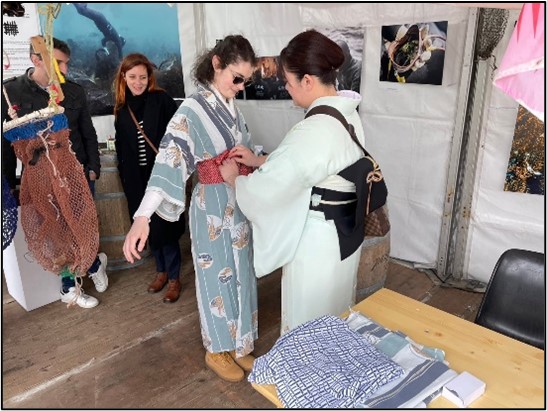 Les ateliers présentant la culture japonaise à travers le prisme de l’okami (terme désignant une aubergiste traditionnelle) et les essayages de yukata ou les dégustations de thé étaient si populaires que des files d’attente se sont vite formées derrière chaque atelier et des médias locaux sont même venus retransmettre l’événement.