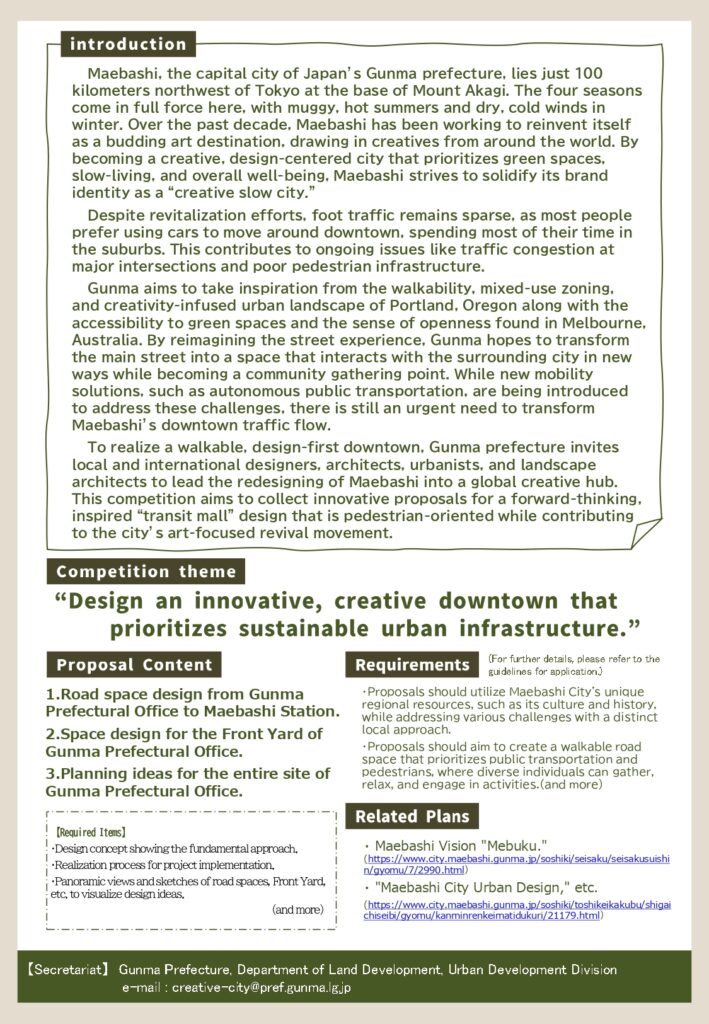 Le département de Gunma attend de nombreuses propositions de la part de designers urbains créatifs du monde entier !