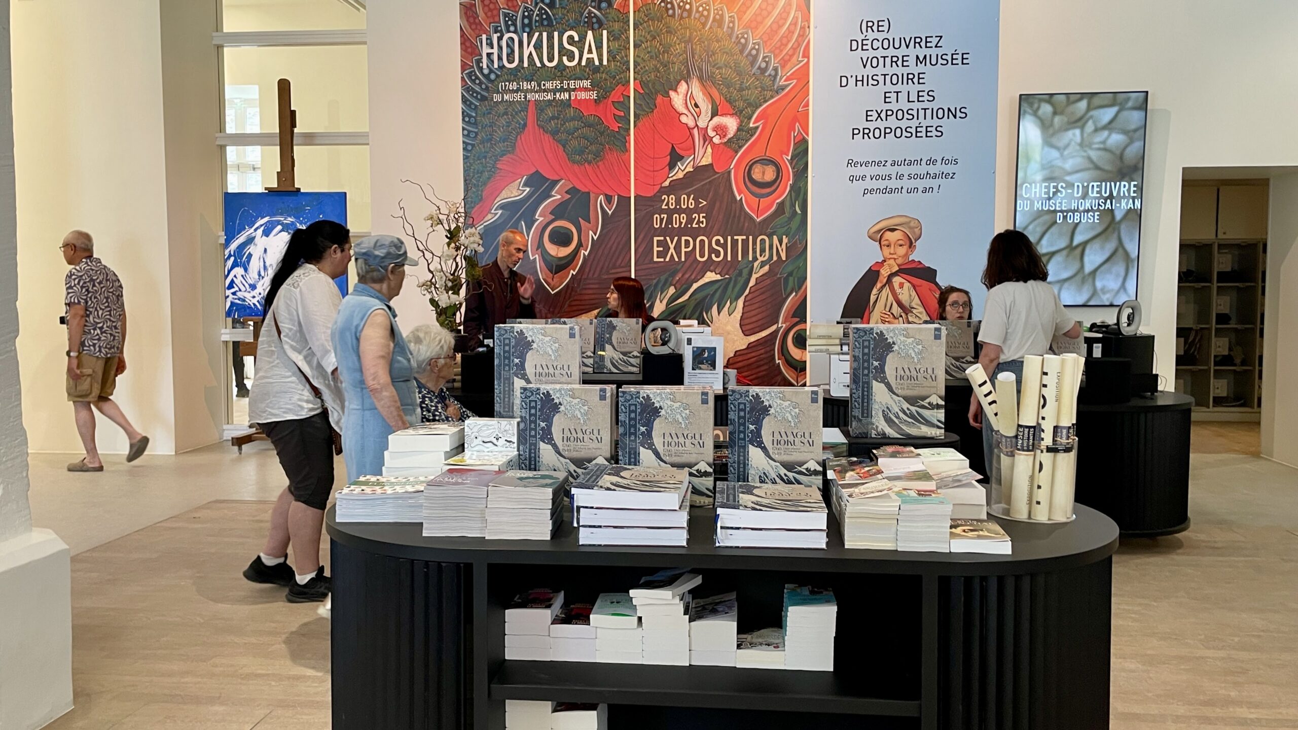 Le vent fait ondoyer les grandes vagues des estampes d’Hokusai déployées en tapisseries qui se marient admirablement à l’atmosphère de cette ville portuaire de l’Ouest de la France. Dans la boutique du musée, le catalogue de l’exposition de 512 pages s’arrache, tandis qu’une pléthore de produits dérivés inspirés des œuvres de cet artiste qui exerçait il y a fort longtemps dans un pays lointain attendent de trouver leur place dans le quotidien des Français d’aujourd’hui.