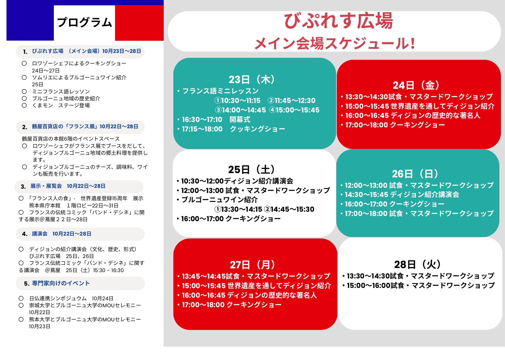 – Animations culturelles quotidiennes avec l’Institut français, l’office du tourisme de Dijon, le GPPR, des étudiants japonais…