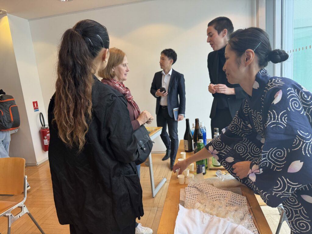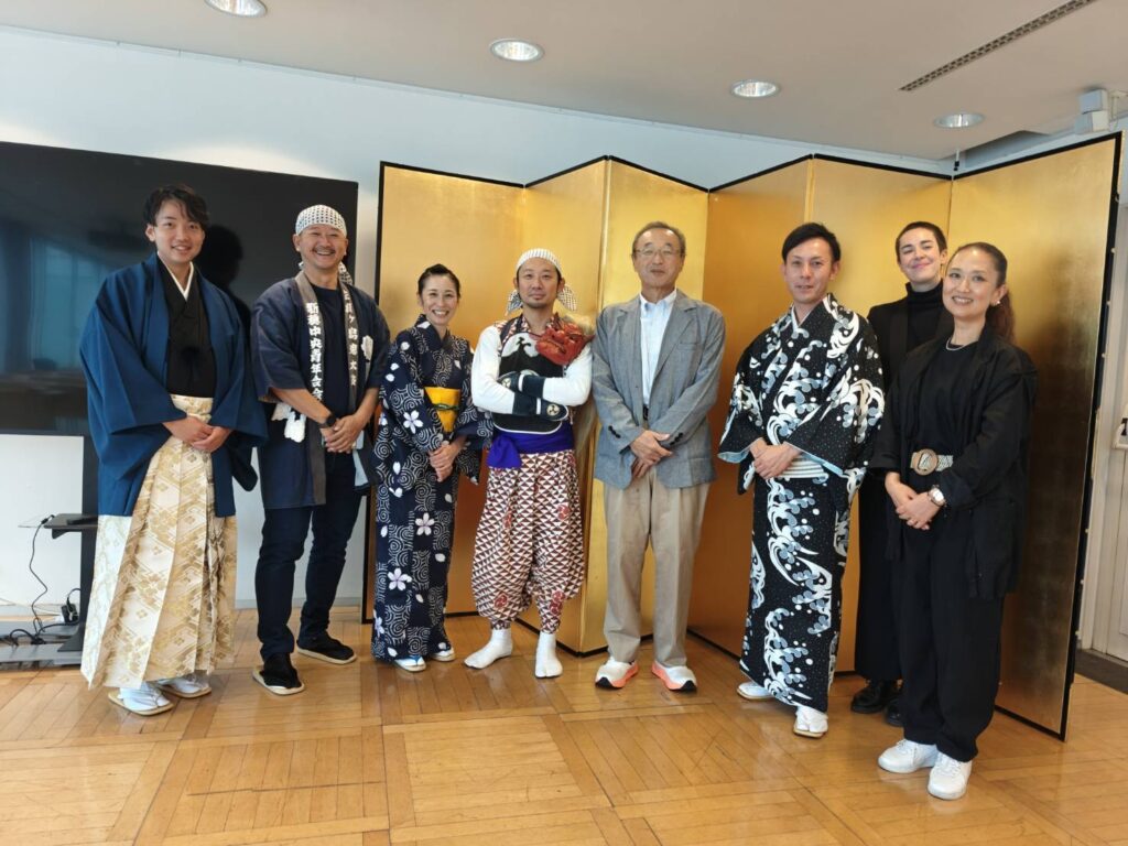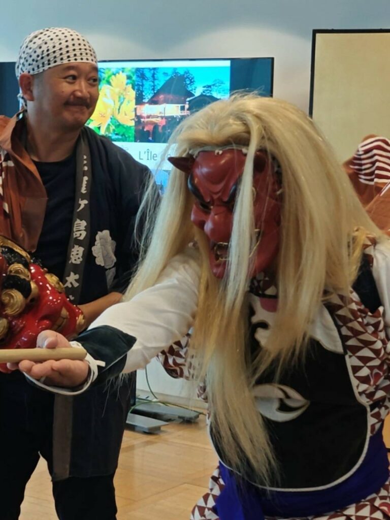 L’exposition « Grès Mumyōi-yaki de Sado : des pièces qui se transforment avec l’usage » s’est tenue à la Maison de la culture du Japon à Paris du 7 au 11 octobre 2025, permettant à de nombreux visiteurs de découvrir l’attrait du grès Mumyōi-yaki de Sado. À l’occasion de cette exposition, une réception a également été organisée : elle a permis la présentation de l’île de Sado par son maire en personne, ainsi que des démonstrations de spectacles traditionnels de l’île — Onidaiko (tambour des démons) et Sado Okesa (danse traditionnelle de l’île de Sado). Sans oublier la dégustation du nouveau riz de l’île ainsi que de saké local.