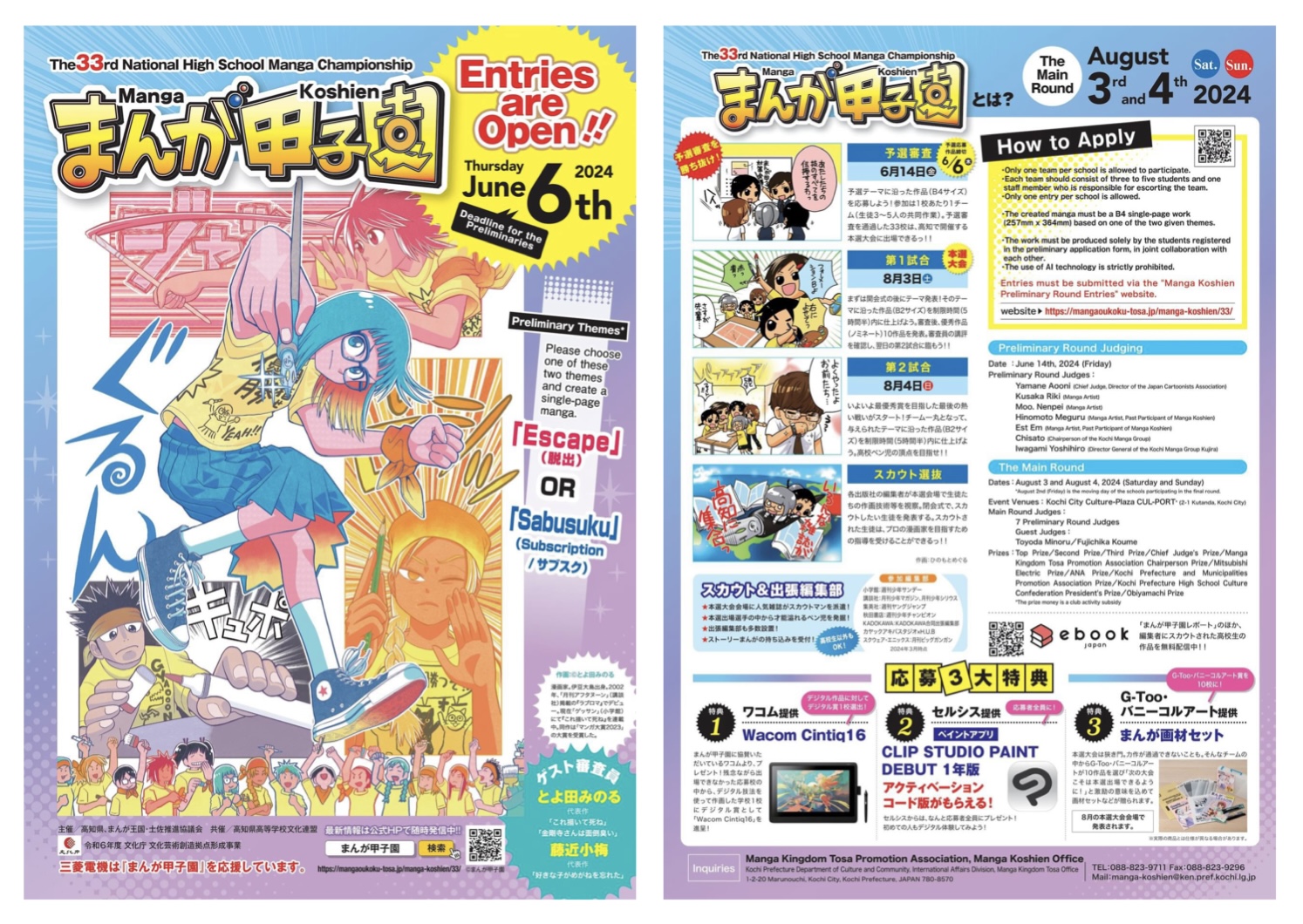Le 33e concours national de manga pour les lycéens (Manga Koshien) est ouvert aux candidatures