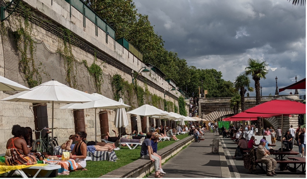 今年もパリでは夏の恒例イベント「パリプラージュ(Paris Plages)」が開かれました。プラージュとは、フランス語でビーチの意味で、期間中はセーヌ川沿いにパラソルやビーチチェアが並べられ、人工ビーチで多くの市民が日光浴を楽しんでいます。以前は大量の砂を運びこみセーヌ川岸に本物そっくりのビーチが作られていましたが、環境面への配慮などを理由として、近年は芝生や木製デッキが利用されています。