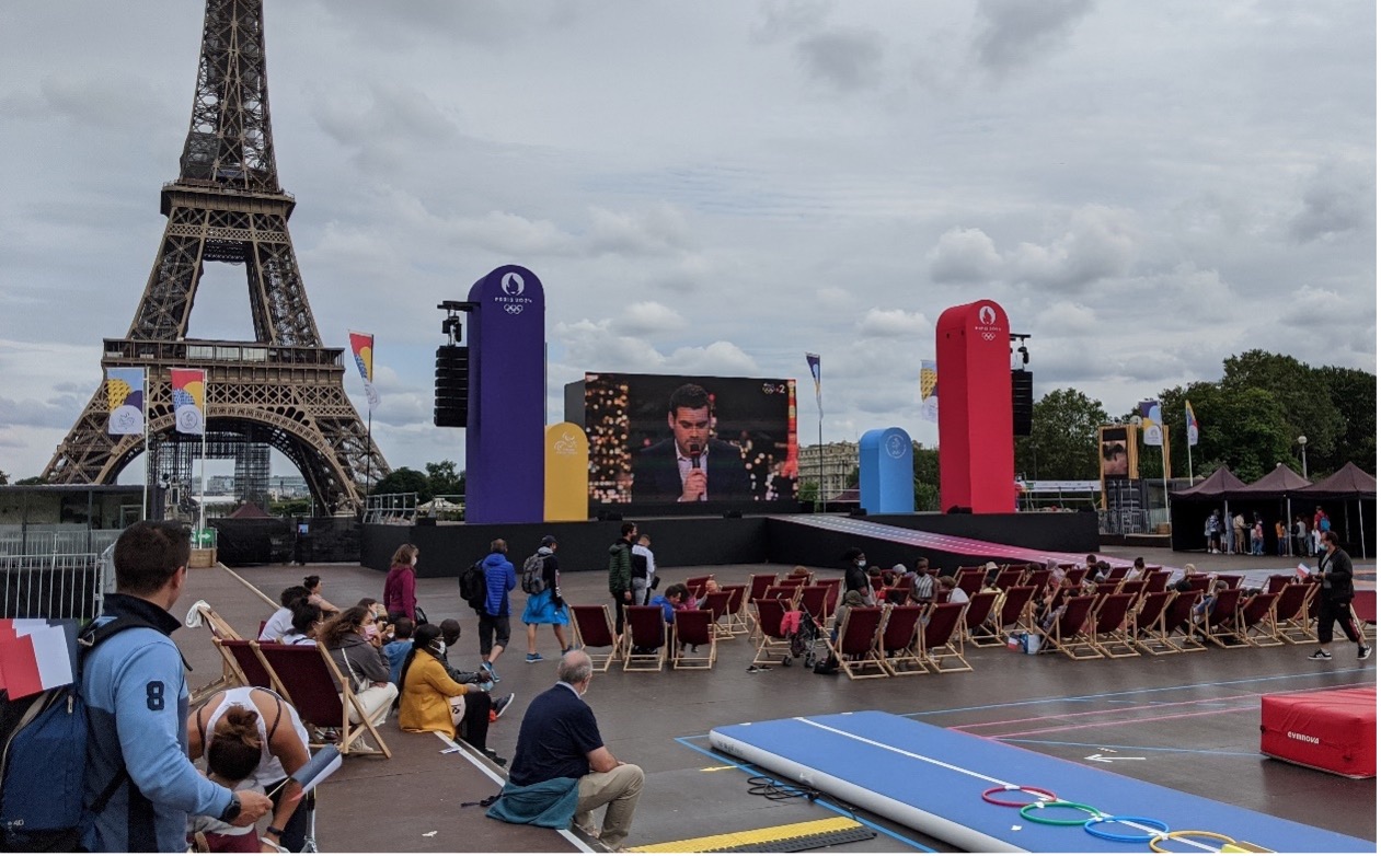 トロカデロ庭園。中央ステージではメダリストの祝勝会も行われました