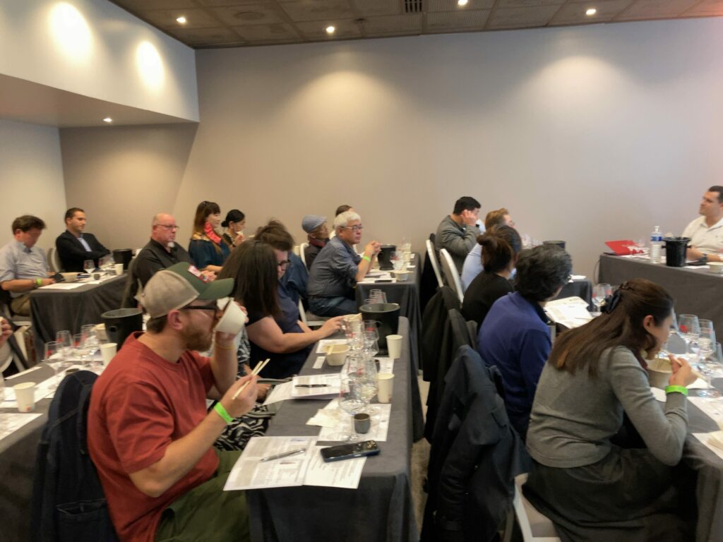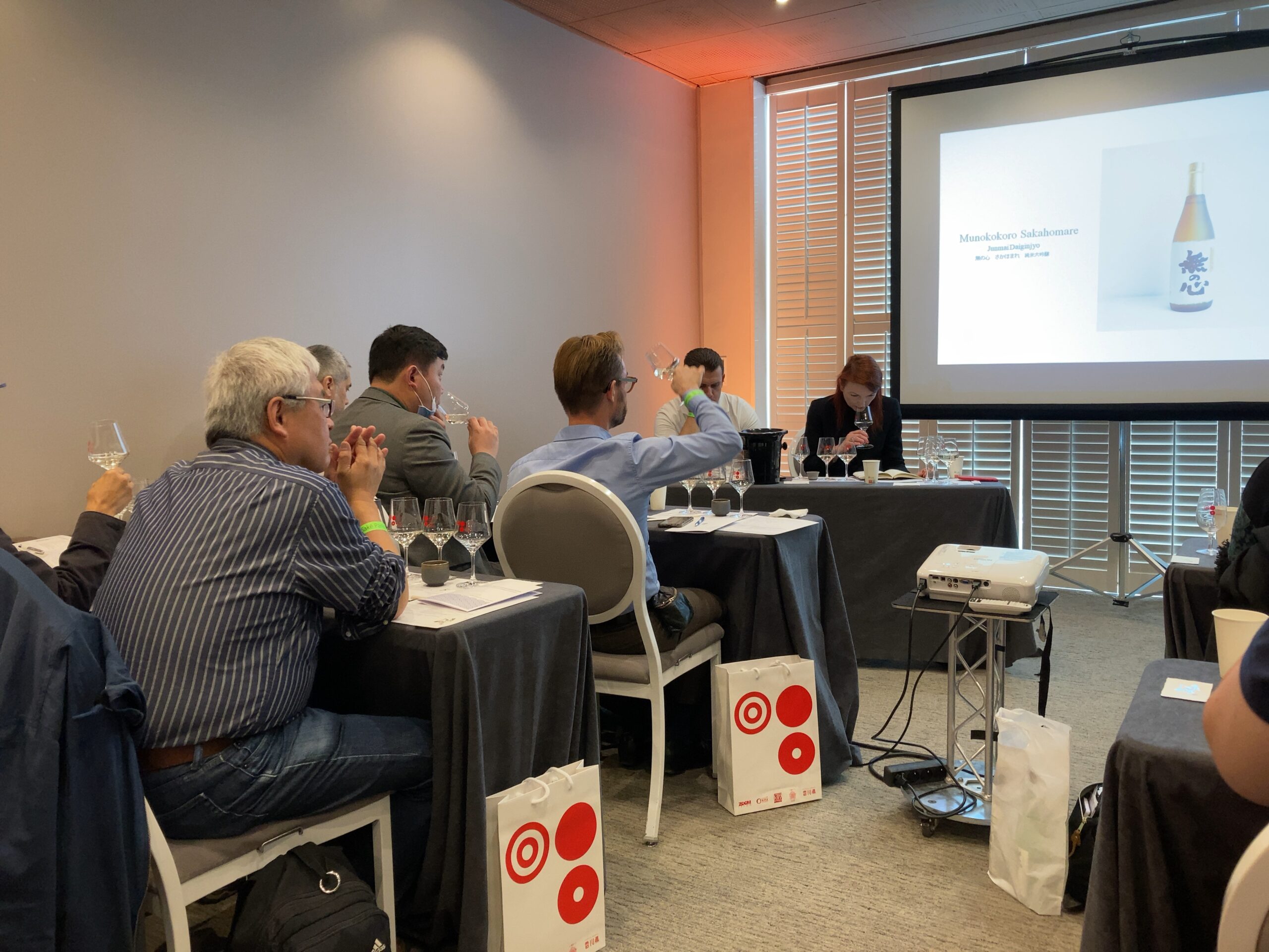本試飲会に参加したレストラン等の業界関係者は、登壇者3名の話を聞きつつ、メモを取る、登壇者に質問をするなどしながら熱心に試飲していました。地酒は順番にその特徴などが説明され、試飲されていきましたが、参加者は時には1つ前に飲んだものと何度も飲み比べたりと、地酒ごとの違いを味わっている様子でした。