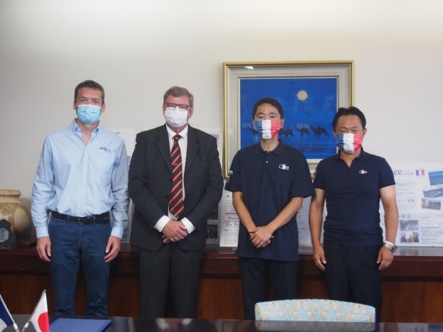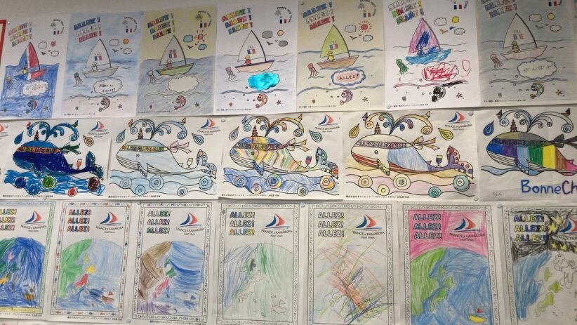 その他にも、ラタトゥイユなどのフランス料理を取り入れた「ボナペティ給食」を市立小学校及び中学校全校で実施し、子どもたちにフランスの文化に触れ多文化共生を学ぶ機会を提供したほか、一部の小学校にはCIRが実際に訪問し、フランスと日本の小学校の違い等について授業を行いました。また、フランスセーリング連盟のジャン=ルック・デネショ会長が市長を表敬訪問された際には、鎌倉市で作成したオリジナルロゴマークのご紹介や、市長と会長が「友好証書」を取り交わし、在日フランス大使館の担当者が表敬訪問された際には、ホストタウン事業の報告をする等様々な交流事業を実施しました。