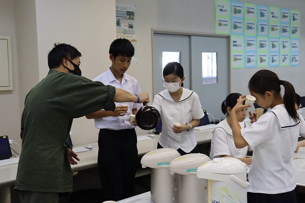 お茶の袋詰めや販売のボランティアも行いました。商品のPRをしている時や商品が売れた時の達成感と嬉しさは、とても大きいものでした。