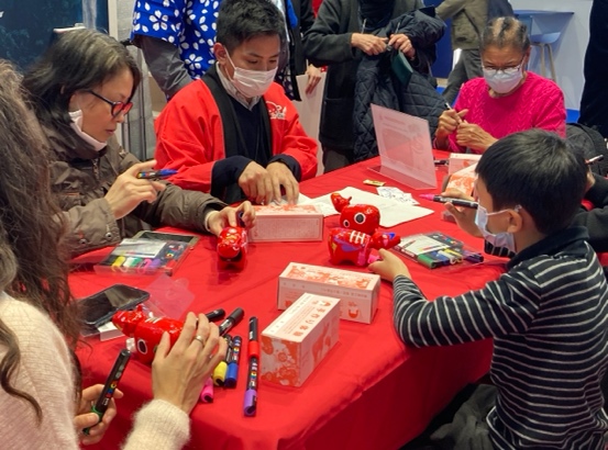 ジャパンブースでは、一般の来場者に向けて旅行プランの作成や観光情報などの提供が行われました。また、書道のデモンストレーションや三味線の演奏、参加者が「あかべこ[1]」や「ミニだるま」に色を塗ってオリジナルの作品を作る体験プログラムなど、様々な集客イベントも行われました。