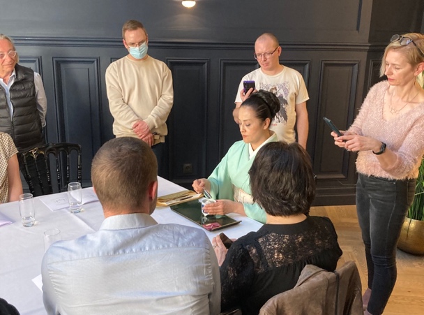 禅の精神と結びついた伝統文化である香道・弓道・茶道・華道・座禅の5つを体験するイベントが行われた中で、パリ事務所は、香道体験に参加しました。講師により香道の歴史から作法まで丁寧に説明が行われた後、実際に3種類(伽羅(きゃら)、真那伽(まなか)、佐曽羅(さそら))の香りを参加者が順に鑑賞しました。