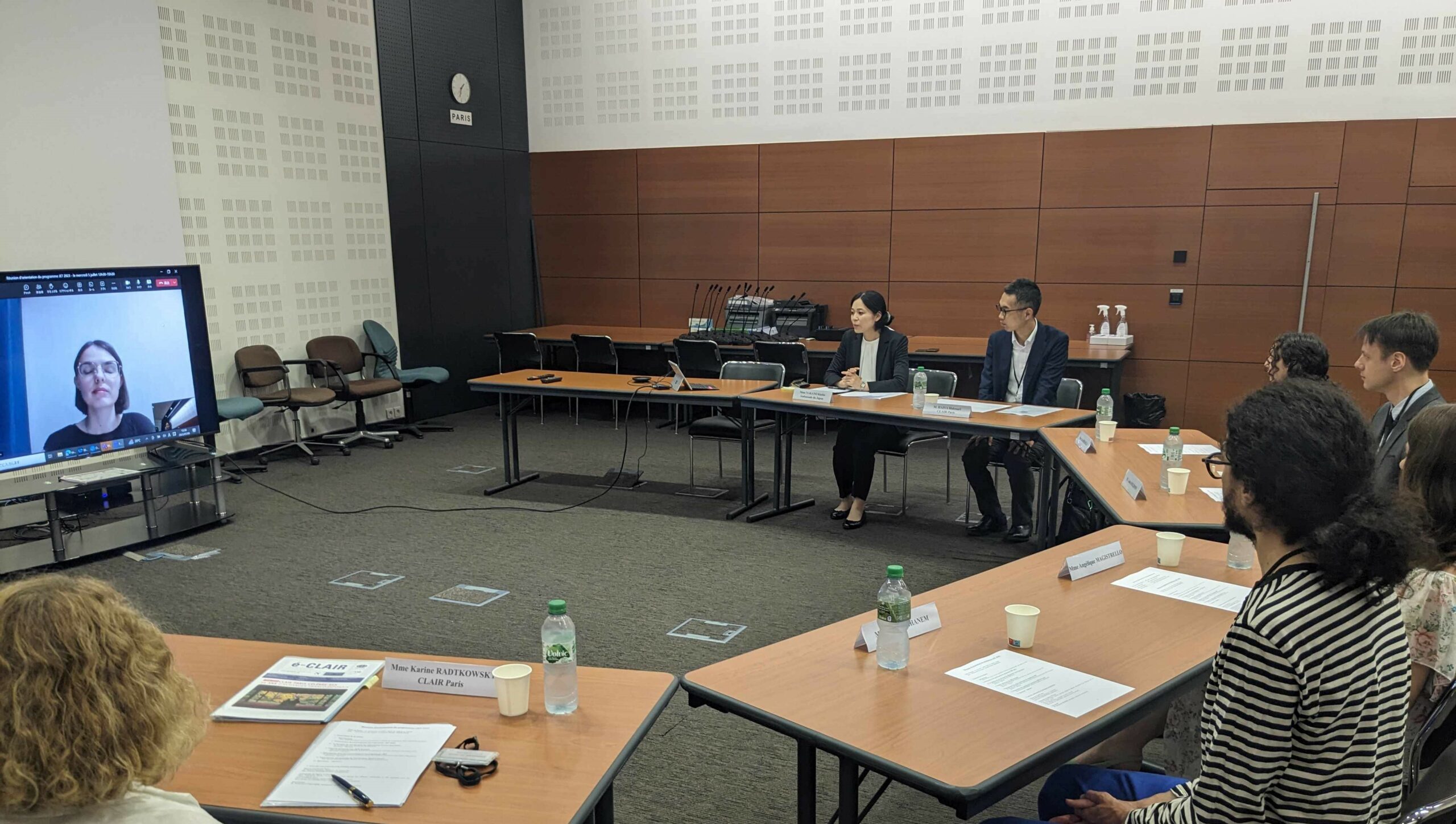 オリエンテーションでは、クレアパリ及びCIR経験者が、日本の地方自治体の組織や業務内容について説明を行いました。参加者たちはその話に熱心に耳を傾けていました。その後、参加者から日本の自治体での働き方や生活などについて、具体的な質問がありました。