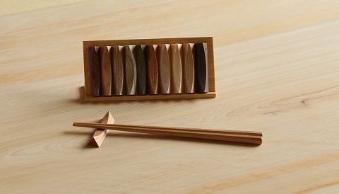 さくら、けやき、とち、くり、伊勢桧等、 10種類で作った箸置き(三重県松阪市より出展)