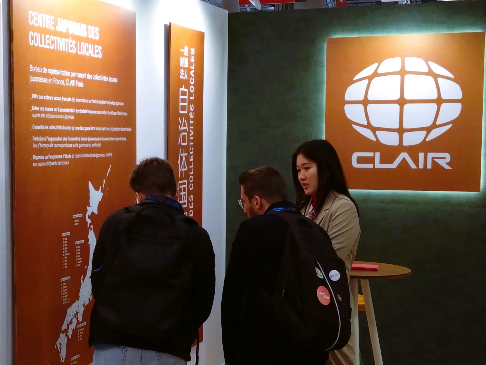 今回の出展では、全仏事務総長組合(SNDGCT)の関係者やクレアの実施している日仏幹部招聘交流事業に参加した市長や事務総長が多数訪れたほか、これから日本の自治体と交流を行いたいフランスの自治体の関係者や日本の自治体での取り組みに関心のある国際機関の関係者などがブースを訪れ、情報交換を行いました。