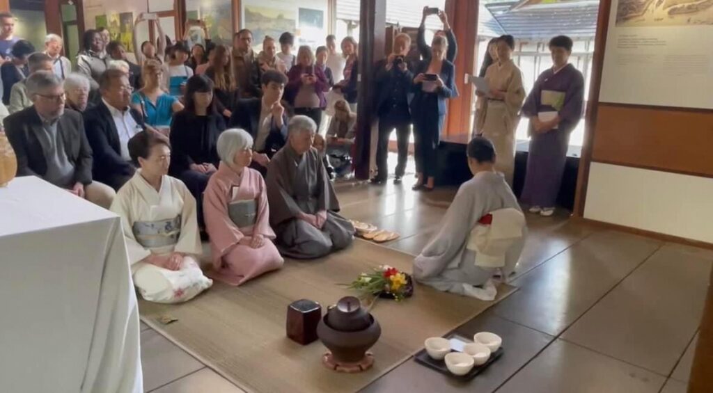 もう一つは、新潟・フランス協会とアトランティック・ジャポン協会が、ナント市ヴェルサイユ島の日本庭園で開催した「ナント新潟茶会」です。お茶を楽しむ茶席のほか、参加者が実際にお茶を点てる体験席も設けられました。会場の外では、ナント市の日本文化団体によるよさこいパフォーマンスや着物体験なども行われ、参加者はまさに日本文化一色の一日を満喫しました。
