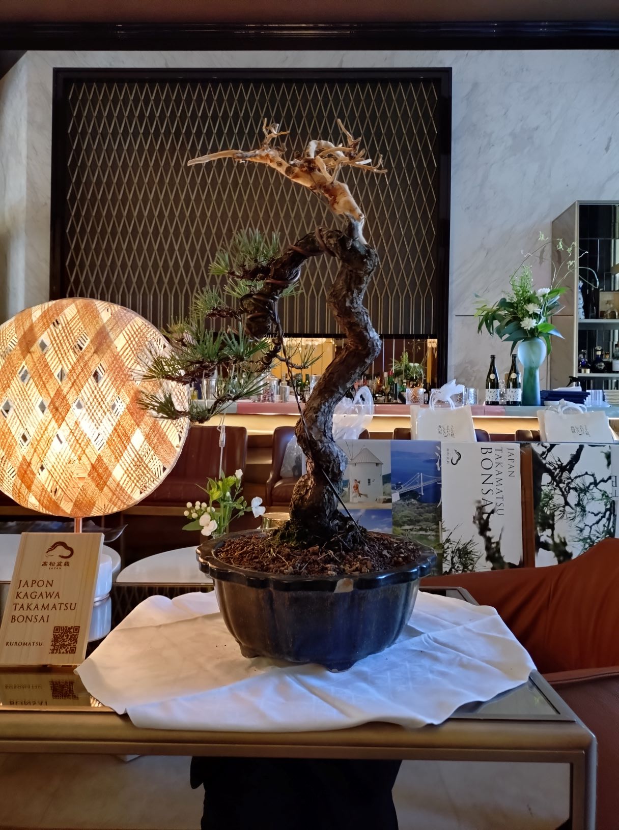 カンヌのカールトンホテルにおいて、メディア関係者や顧客など約50名を招待し、高松盆栽(黒松)のデモンストレーションと贈呈式を行いました。デモンストレーションは、盆栽の葉を整えつつ、参加者からの質問に答える形で進行しました。盆栽を所有している参加者からは、管理方法に関する具体的な質問が寄せられ、技術的なアドバイスを提供しました。その後、デモンストレーションで整えた高松盆栽(黒松)の贈呈式を行いました。盆栽はカールトンホテルの中庭に展示され、現在も管理していただいております。今後、この展示を通じて、多くの方々が高松盆栽に興味を持つことを期待しています。