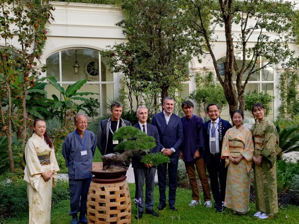 この式典では、バリアンテ副市長をはじめとする関係者と高松盆栽の贈呈を記念したプレートの除幕式を行いました。盆栽はそのままシニアクラブに展示されることになっており、盆栽にかかわるイベントを開催することを検討していただいております。