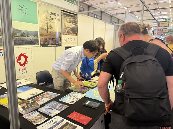 クレアパリは「日本伝統文化ステージ」付近にブースを設けました。ブースでは、日本各地の自治体が発行する観光パンフレットや資料を配布し、来場者に地域の魅力を紹介しました。訪れた来場者は若者、家族連れ、中高年層など幅広く、日本旅行に関する具体的な質問も多く寄せられました。特に、「2週間旅行する場合のおすすめルート」「訪問に適した季節」「冬のイベント情報」など、旅行計画に関する質問が目立ち、日本の観光地への関心の高さがうかがえました。