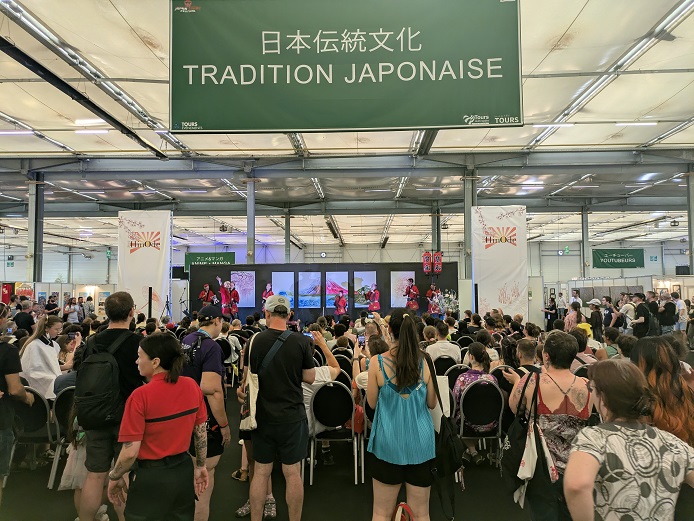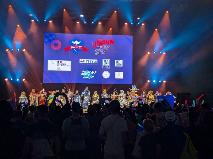 Japan Tours Festivalは、2015年に日本の伝統文化とポップカルチャーを紹介するイベントとしてスタートしました。初年度には約12,000人が来場し、以降も年々規模を拡大。現在ではフランス国内でも有数の日本文化イベントのひとつとして定着しています。今年は節目の10周年ということもあり、例年以上に多様なプログラムが企画されました。会場では、日本の漫画やアニメ関連のクリエイターがゲストとして招かれ、関連作品のファンが数多く来場しました。また、日本から招聘したパフォーマーによる剣舞、阿波踊り、和楽器等多彩な日本伝統文化ステージや、フランス国内から選抜されたコスプレイヤーによる大会も行われ、大きな盛り上がりを見せました。